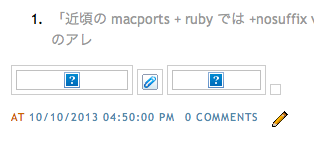 - 「近頃の macports + ruby では +nosuffix variant が廃止されている」, k12uのアレ